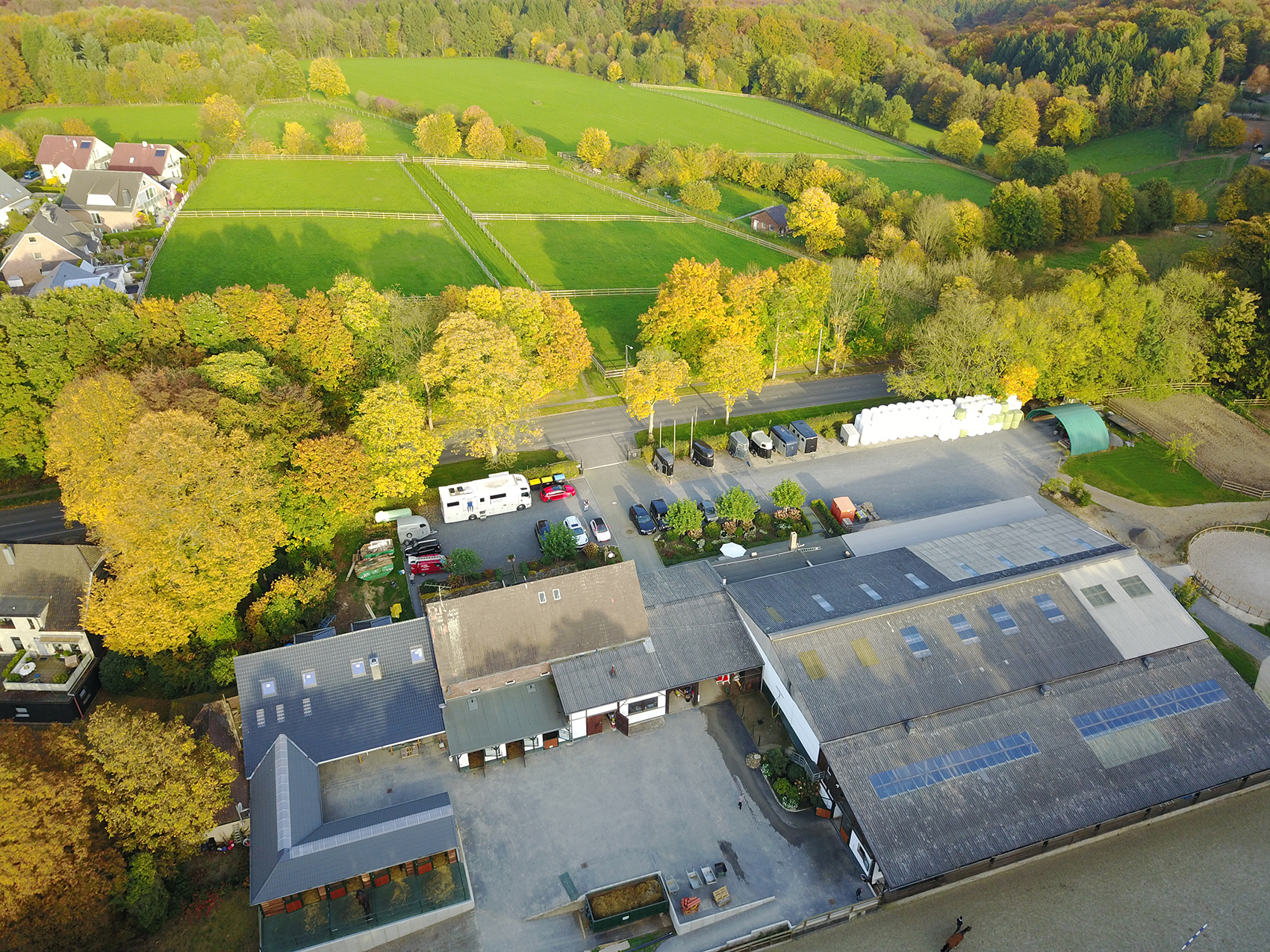 Das Gut Jagenberg erstreckt sich auf einer Gesamtfläche von 22ha. Mit 6ha großen eingezäunten Wiesen und direkter Ausreitmöglichkeit am Hof (deutscher Mischwald). Die 20 x 40m große Reithalle ist das Herzstück der Anlage. Direkt hinter Halle befindet sich ein 30 x 80 m großer Springplatz. Eine Führanlage der Luxusklasse mit einer Größe von 15 x 25 m, ein Longierzirkel & Aussenplatz mit „Ebbe & Flut System“,4 ganzjahres Paddogs und ein geflasterter Waschplatz mit warmen Wasser runden den Aussenbreich ab.